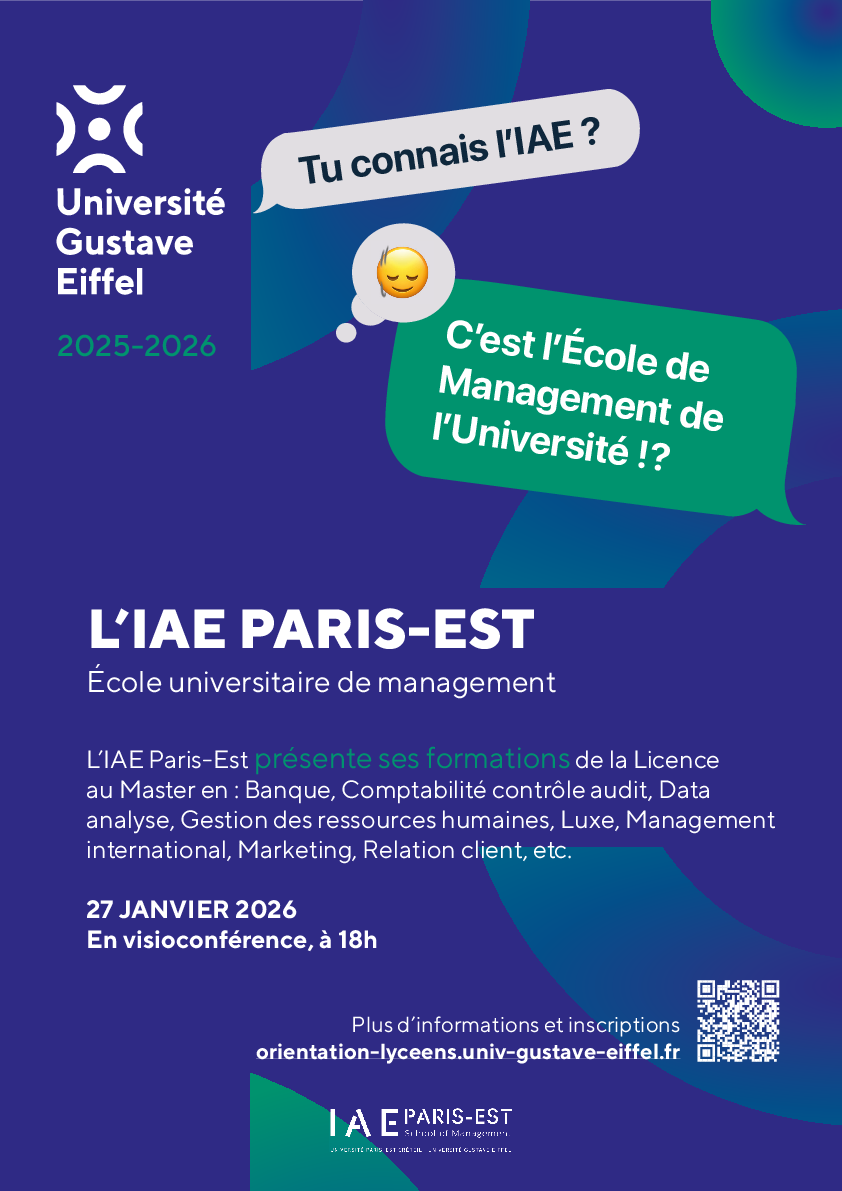 - Objectif : faire découvrir l'IAE Paris-Est école de management et présenter ses formations